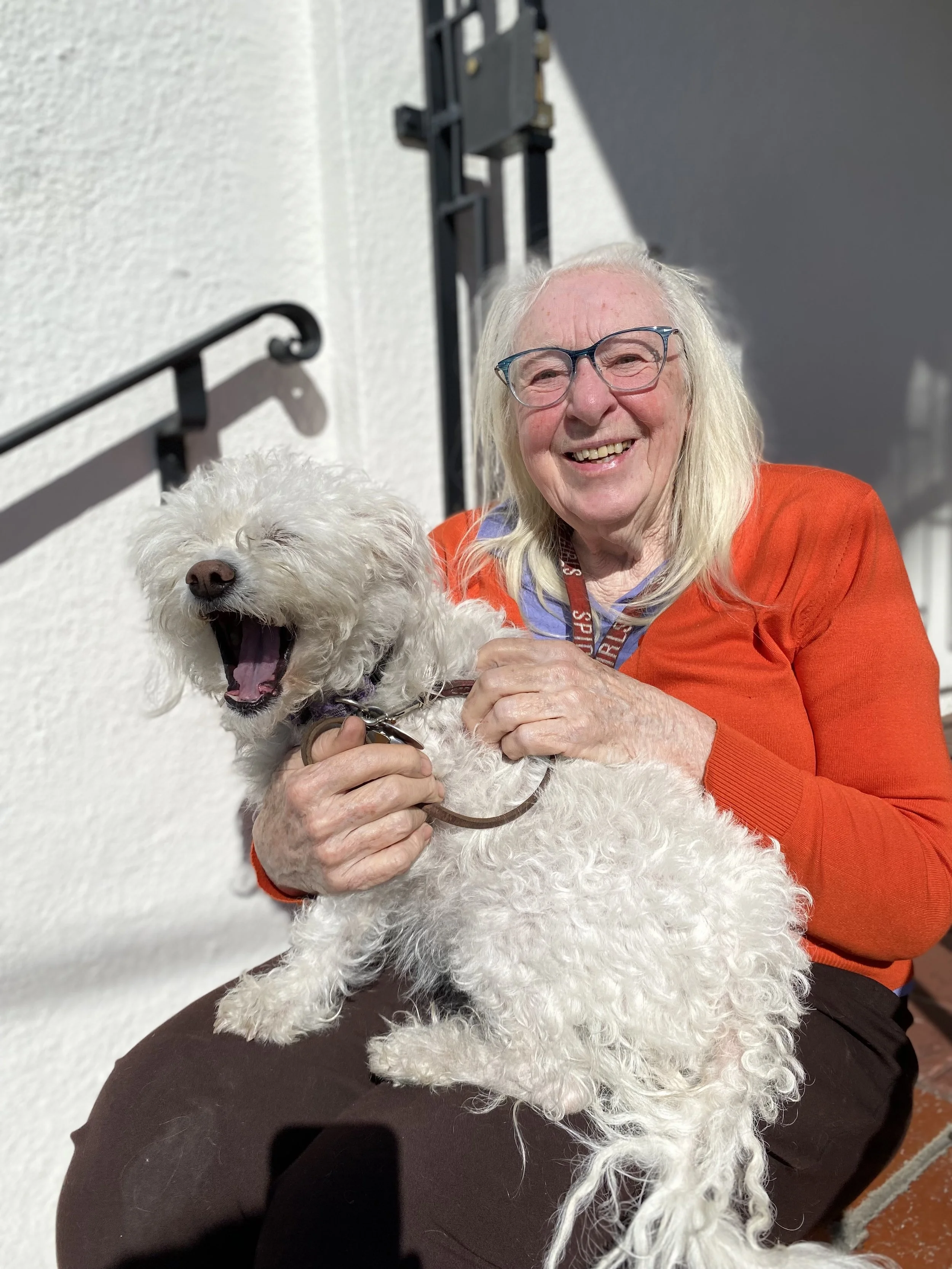Carolyn, “Lindy”, Chris came to San Francisco in young adulthood when her father moved her here, from England, to be the sponsor of her younger brother. Raised in England, she is a “Holles girl”, a graduate from the Lady Eleanor Holles School. She had a varied career in San Francisco, including Program Assistant in Economics and Chemistry at the University of San Francisco, where she was also the Chief Steward for the Office and Professional Employees Union. She received a Bachelor’s of Science from the University of San Francisco and a Bachelor’s of Fine Art in Sculpture from the Academy of Art University. She’s a poet and an artist. She says she’s blessed with wonderful neighbors.